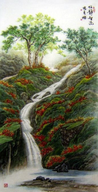 d002 仁靜智流(136x69公分) ---傳統新意水墨作品